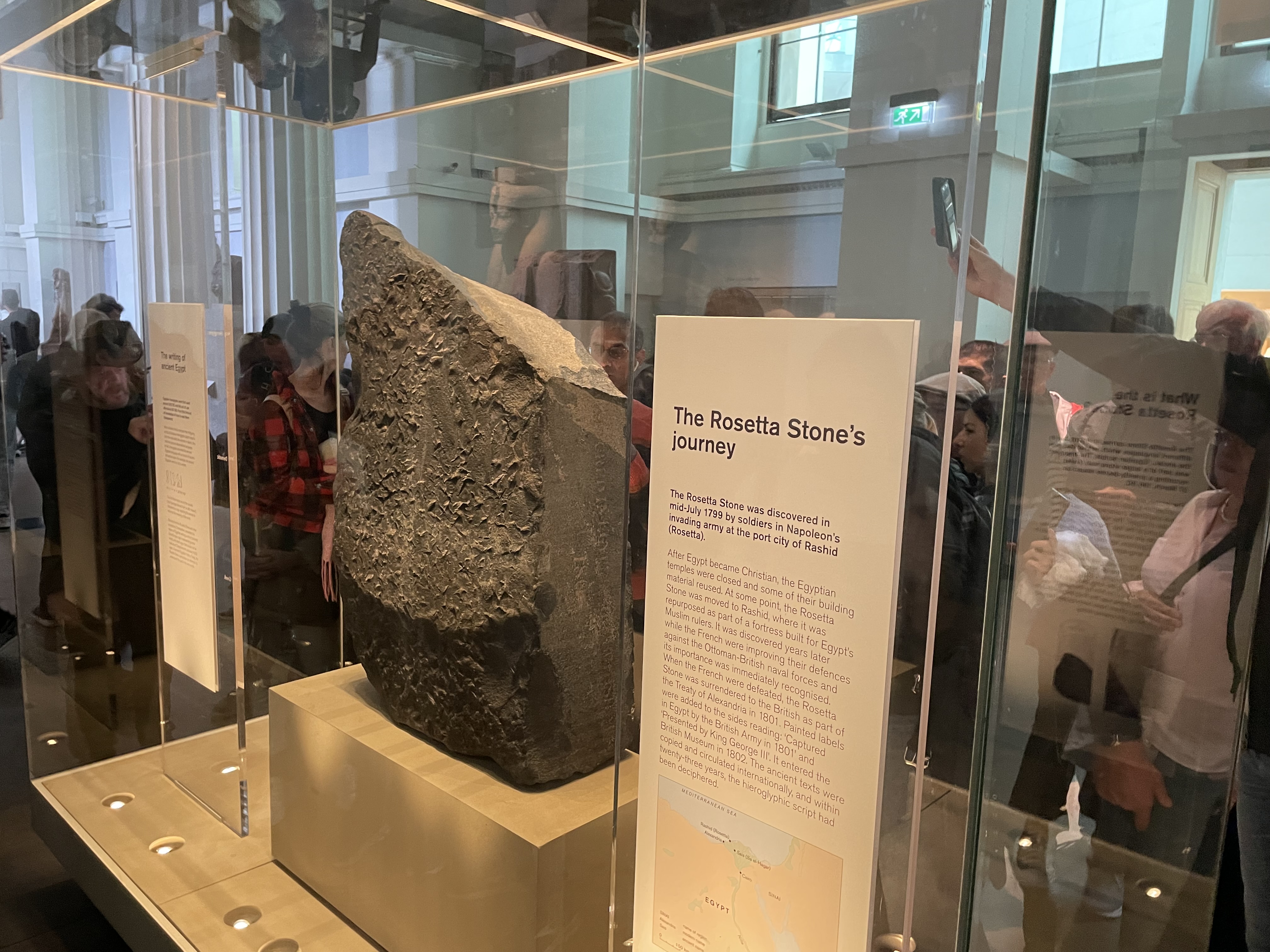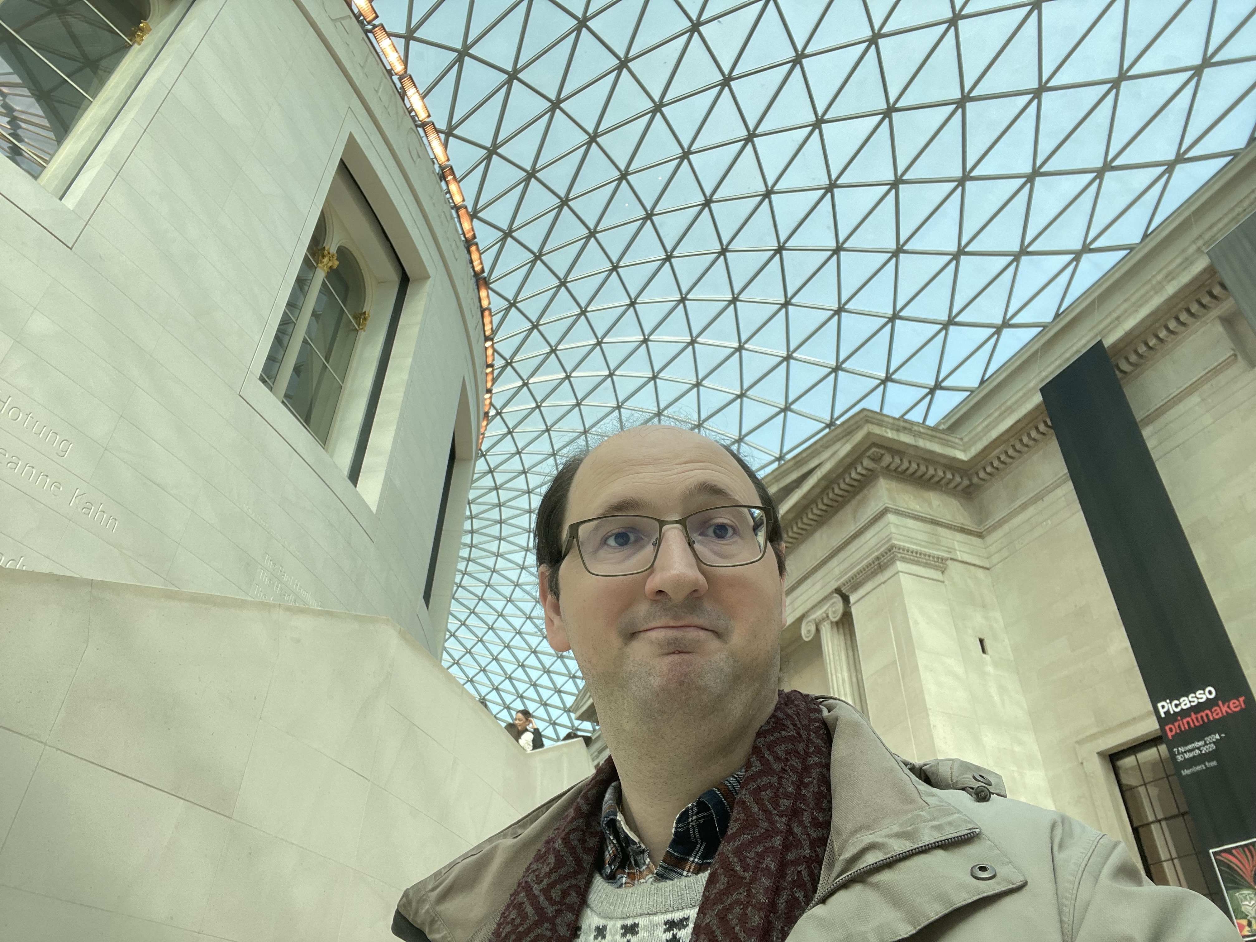 Je reviens de Londres où j’ai passé le week-end avec mon neveu pour lui faire découvrir la ville. Le séjour a été très court, mais on a eu de la chance avec le temps. Mon moment préféré a été la visite du British Museum, avec notamment la Pierre de Rosette dans la section égyptienne et la magnifique bibliothèque au milieu de la cour centrale.